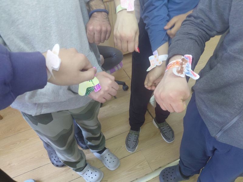 На заједничкој радионици најпре су погледали кратку презентацију о особеностима Дауновог синдрома, потом су им се представили поједини корисници Удружења, а затим су заједнички израђивали шарене чарапе од папира. Шарене, различите чарапе се иначе традиционално обувају на овај дан, како би се с једне стране скренула пажња на важност уважавања различитости, а с друге на радост, шаренило и емотивну топлину особа са Дауновим синдромом.