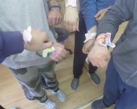 На заједничкој радионици најпре су погледали кратку презентацију о особеностима Дауновог синдрома, потом су им се представили поједини корисници Удружења, а затим су заједнички израђивали шарене чарапе од папира. Шарене, различите чарапе се иначе традиционално обувају на овај дан, како би се с једне стране скренула пажња на важност уважавања различитости, а с друге на радост, шаренило и емотивну топлину особа са Дауновим синдромом.